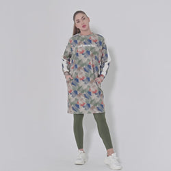 超寬鬆女裝日常穿著圖案長袖運動上衣